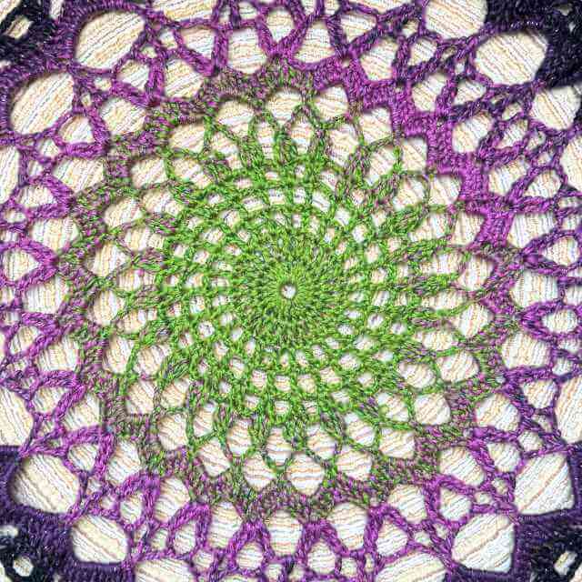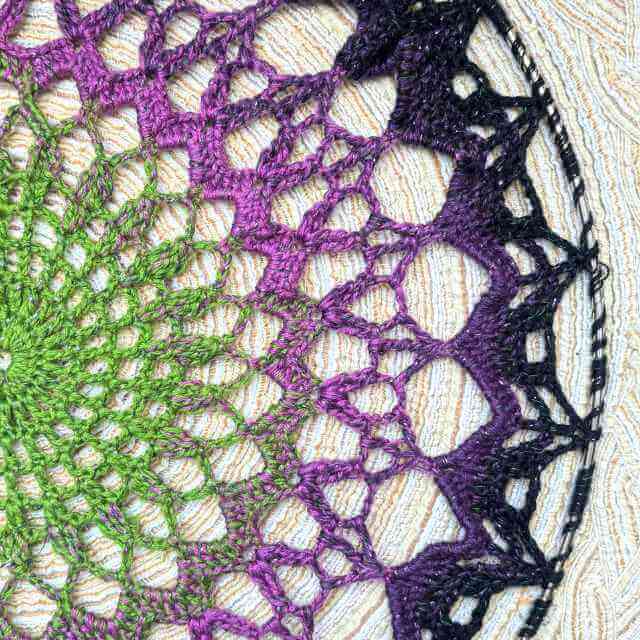 Deze garencake is verkrijgbaar vanaf 100 meter tot aan 1000 meter! Perfect voor als je kleine stukjes haak of breiwerk een extra touch wilt geven of een complete sjaal wilt maken. Het garen van Witch Craft loopt in een prachtig kleurverloop van groen, lichtpaars, donkerpaars naar zwart. Daartussen zit een groene glitterdraad voor een leuk effect in je haak of breiwerk.